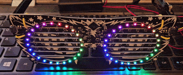 It built code that had some issues, but after a few iterations and pasting the errors back into Claude, I came out with exactly the result I was looking for! The end result was scrolling text from the Bluefruit LE Connect App with the ability to change the font color from the app, and the rotating rainbow circles around the eyes. Pretty fun!